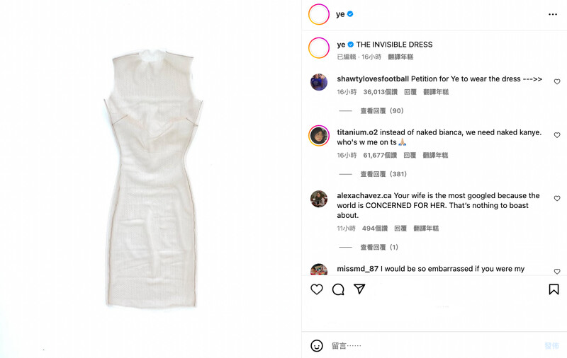 肯爷(Kanye West,现改名为Ye)为妻子Bianca Censori打造的各种裸露时尚早已成为全球热议的话题,近日更是在2025葛莱美颁奖典礼的红毯上脱掉大衣展示身穿的极透薄纱洋装,这个几乎与裸身无异的造型也瞬间掀起大量话题,而这一切似乎也成了肯爷为个人服装品牌女装支线新品预热宣传。