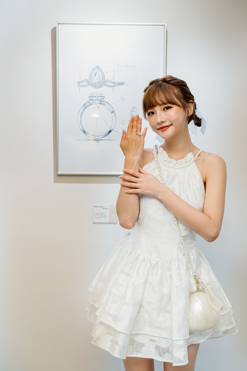 发表会当天,现场精心布置的迪士尼装饰以及飘浮在半空中的梦幻花卉,让人宛如走进一个充满惊喜的小小迪士尼世界,也让拥有两个女儿的Nina依旧少女心大开!面对此次最吸睛的《美女与野兽》、《仙度瑞拉》和《魔髮奇缘》3款经典公主系列设计钻戒,Nina不假思索地挑选女儿也喜欢的《魔髪奇缘》钻戒做配戴。高贵典雅的系列是以3位经典公主为设计蓝本打造,《魔髮奇缘》钻戒以动画中重要的关键——王冠为灵感,设计师特别选择相当亮眼且带有优雅气质的梨型车工钻石,展现乐佩令人无法忽视的好奇与热情,佐以两侧的配钻更增添华美气息。而K.UNO让人爱不释手的原因更在于,就连座台内侧也都隐藏设计师的巧思细节,《魔髮奇缘》钻戒选择让乐佩觉醒的太阳国徽做为点缀,让无数粉丝们惊呼,