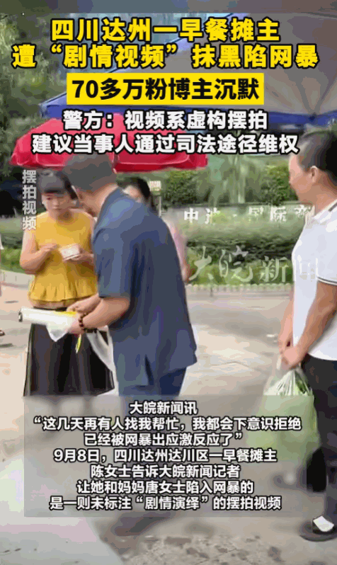 “建议封杀这种网红!”四川达州,一名70多万粉丝的网红,借了个早餐摊位摆拍视频,为了博取流量,故意抹黑摊主,致使不明真相的人前去网暴。